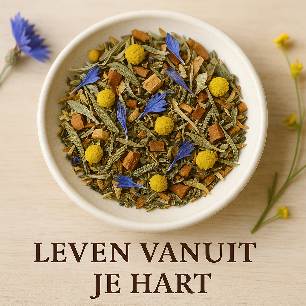 Leven Vanuit je Hart is een kruidenmelange die uitnodigt tot rust, openheid en zachtheid. Een kop vol warmte die herinnert aan de kracht van eenvoud en de schoonheid van verbinding – met jezelf en met de wereld om je heen.