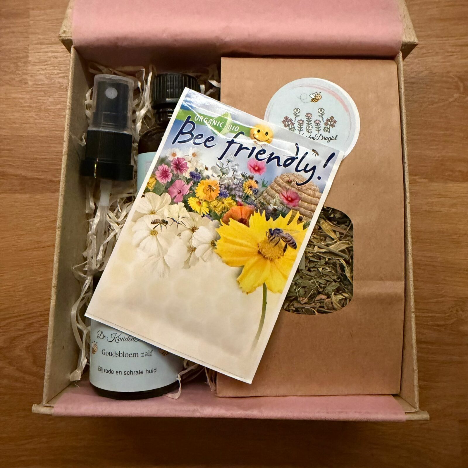 Elke box bevat een zakje bijen-zadenmengsel, waarmee je bloemen zaait die bijen en vlinders ondersteunen. Zo straal je niet alleen zelf, maar geef je ook licht terug aan de natuur.