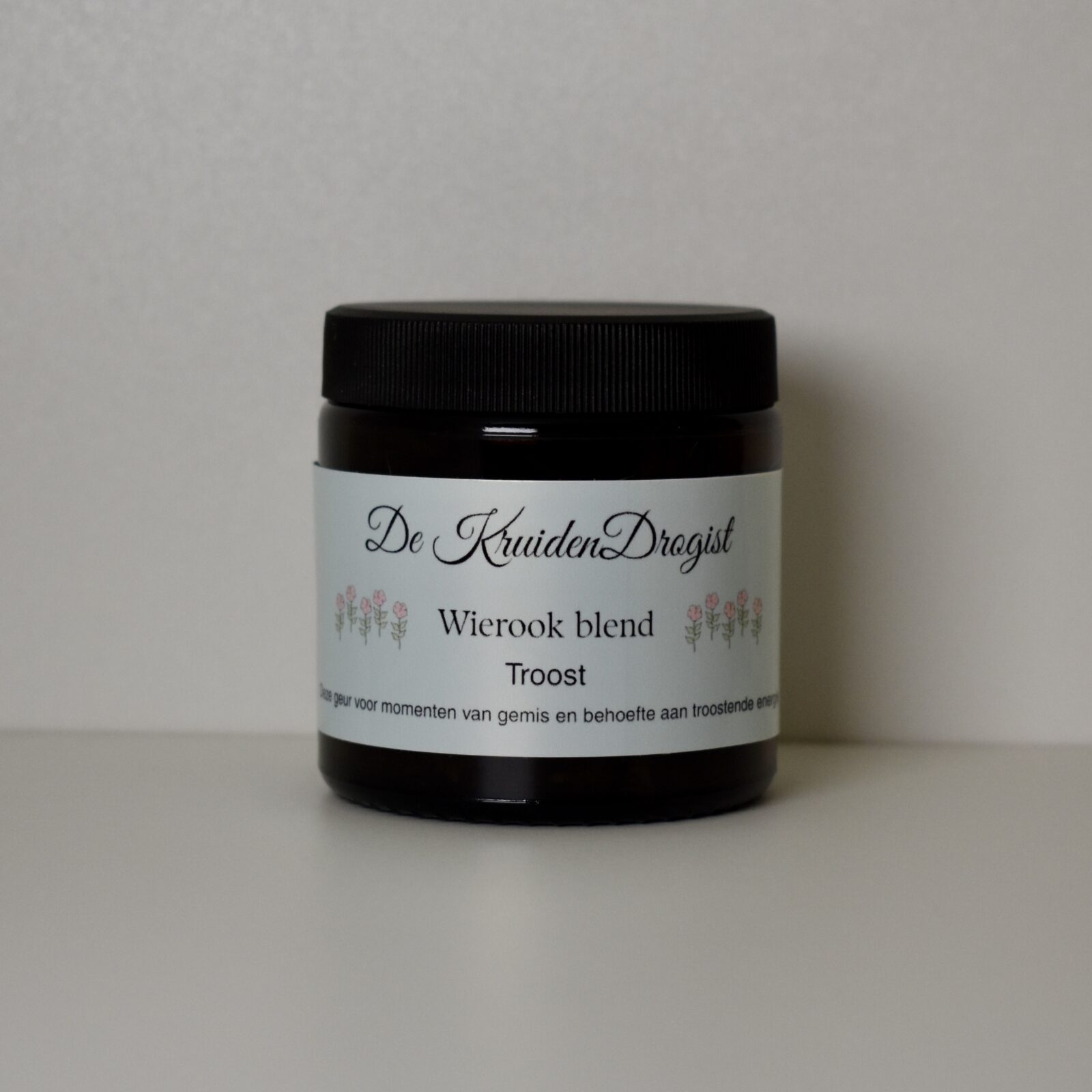 Onze troostwierook wordt geleverd in een glazen potje van 120 ml. Dit zorgt ervoor dat de geur langdurig bewaard blijft en het potje kan eenvoudig worden hergebruikt of gerecycled. Het glazen potje beschermt de kruiden tegen vocht en licht, waardoor de aromatische eigenschappen optimaal behouden blijven.