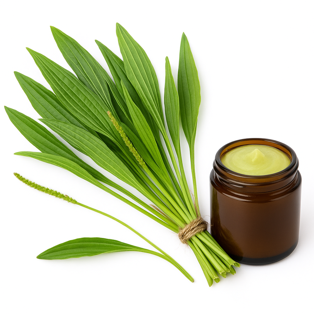 Smalle Weegbree (Plantago lanceolata) is een bekend geneeskruid dat veel langs wegen en in grasvelden groeit. In zalfvorm wordt het vooral ingezet bij huidirritaties, insectenbeten en wondjes. De zalf heeft ontstekingsremmende en huidherstellende eigenschappen dankzij de natuurlijke slijmstoffen en aucubine in de plant. Pepermunt etherische olie zorgt voor een verkoelend effect en stimuleert de doorbloeding, wat het herstel van de huid bevordert. Hierdoor ontstaat een verzachtende en verfrissende zalf die ideaal is voor dagelijkse huidverzorging bij lichte irritaties.