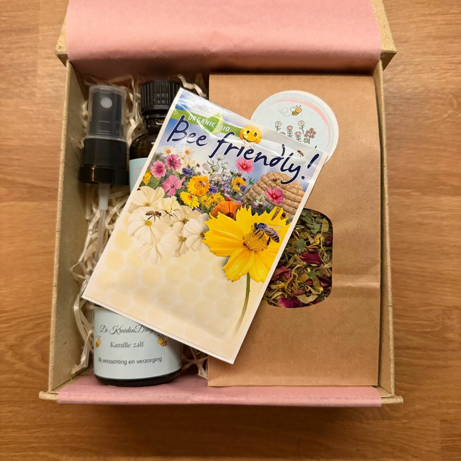 Elke giftbox bevat bovendien een zakje bijen-zadenmengsel, waarmee je een kleurrijk bloemenveld kunt laten groeien. Zo geef je niet alleen een liefdevol cadeau, maar steun je ook bijen, vlinders en andere bestuivers.